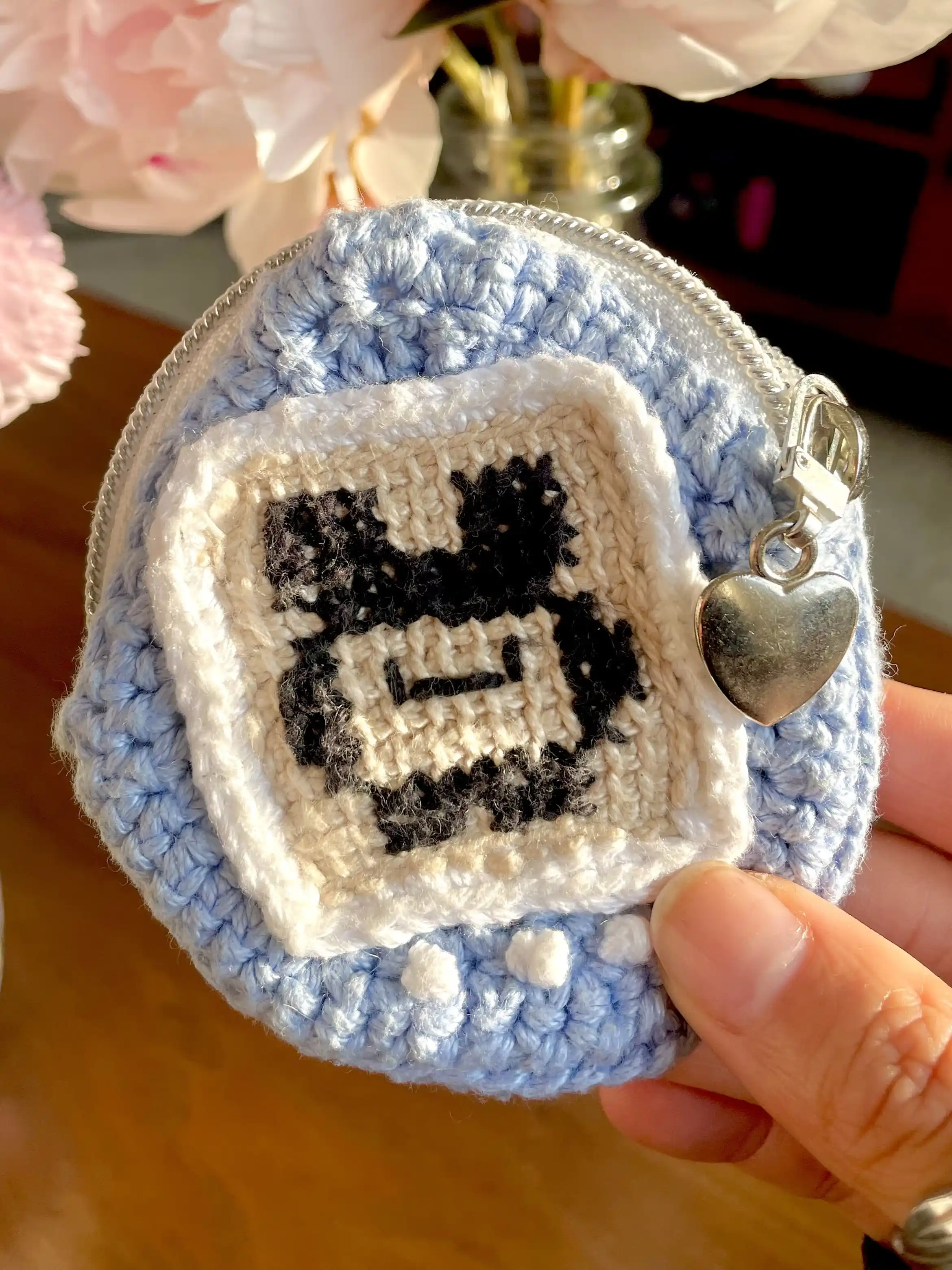 i saw this tamagotchi-shaped pouch on instagram and thought "omg i have to make that." so i learned how to crochet in january 2025.