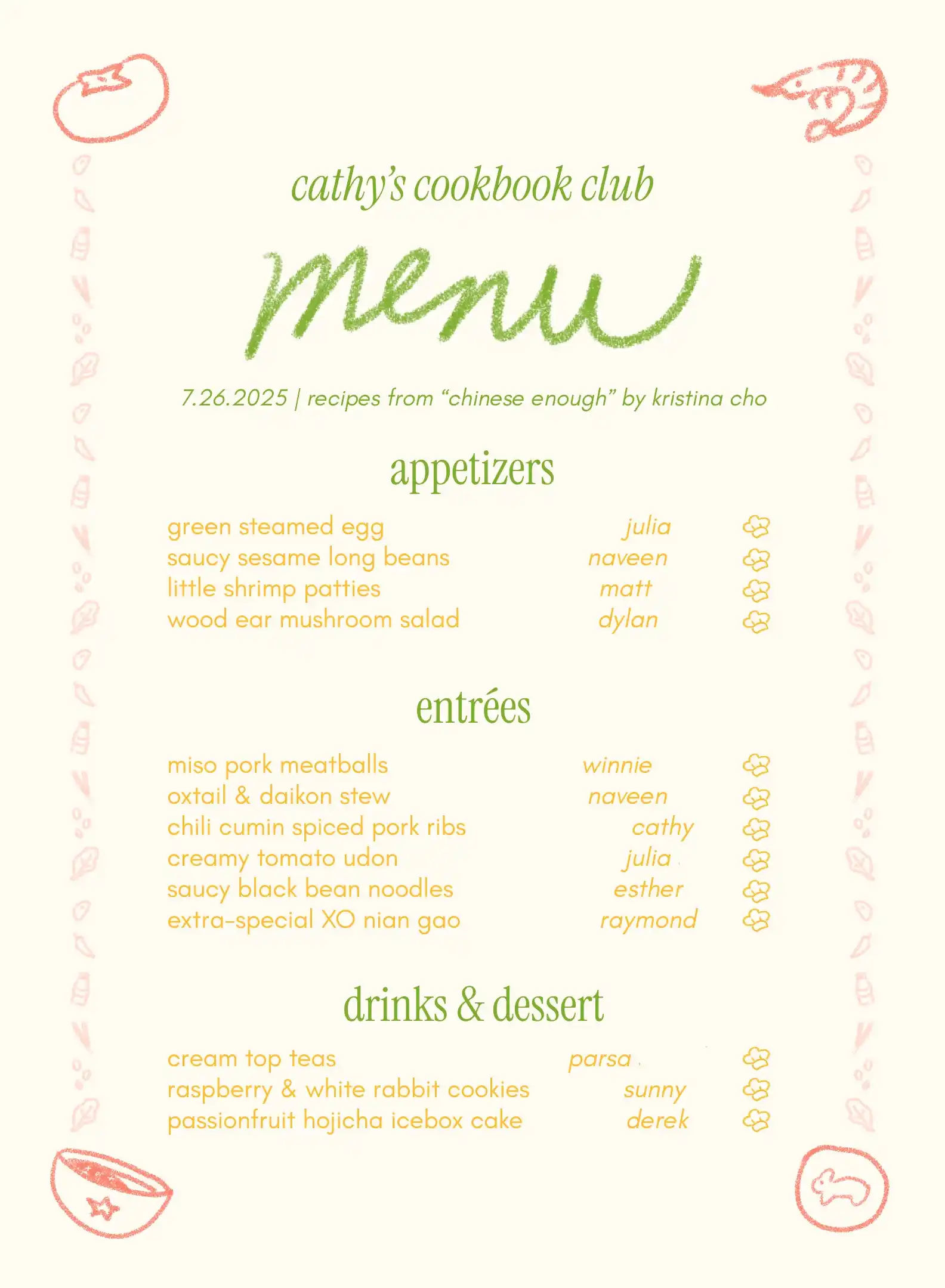 - an invitation + a custom menu for my friend cathy's party